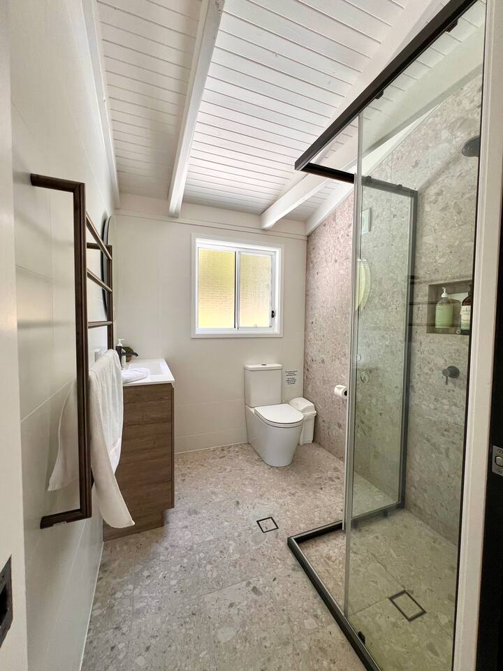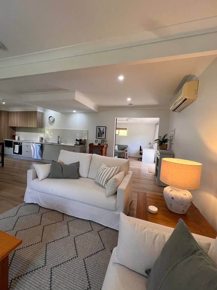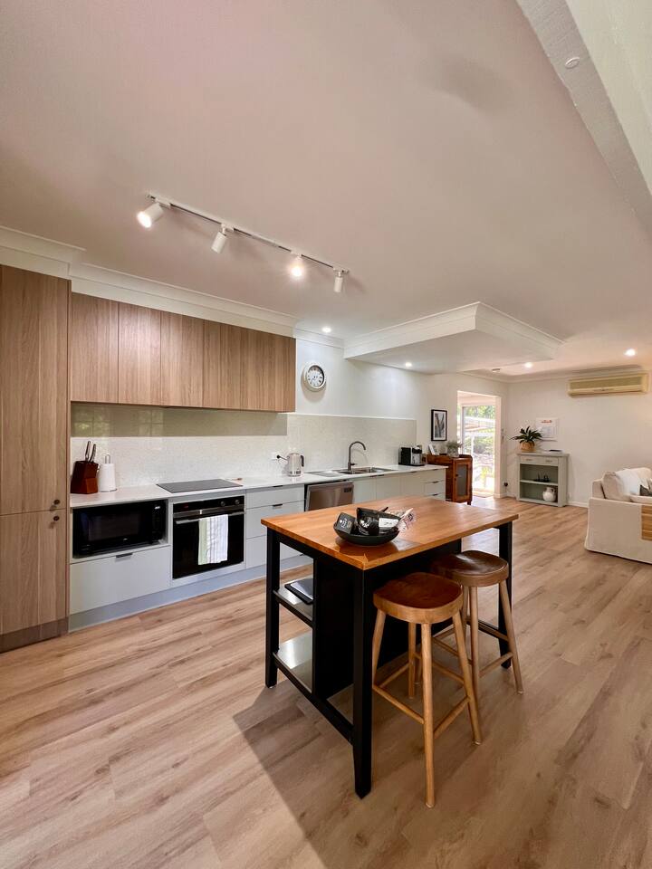 Two bedrooms, 2 full bathrooms. Fully equipped kitchen. Induction cooktop, oven, microwave, dishwasher and large fridge. Laundry with washing machine and dryer. Outdoor hot and cold shower for washing off sand after the beach. Comfortable couches. Dining table that seats 6. Queen size comfortable sofa bed in second living area, with an attached bathroom. Clothesline outdoors and another undercover to hang beach towels and swimming costumes overnight. Outdoor table that seats 8.